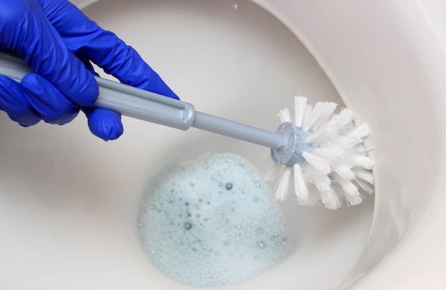 Leave the towels in place for a few hours, refreshing the vinegar every hour or so. Once this is done, remove the towels and scrub the sides of the bowl with a scrub brush. Once the hard water stains have been removed, turn the water back on in the toilet and allow the bowl to refill.
